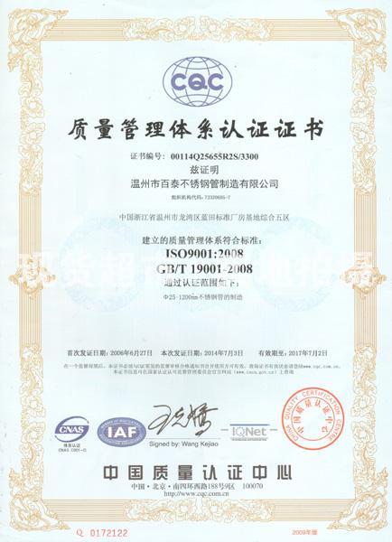 質(zhì)量管理體系認(rèn)證證書(中文)